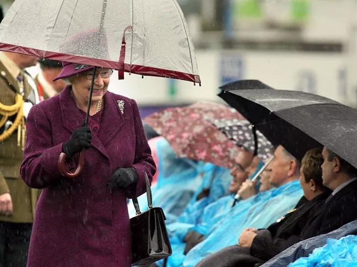 有沒有發現女王用的傘和衣服很相配