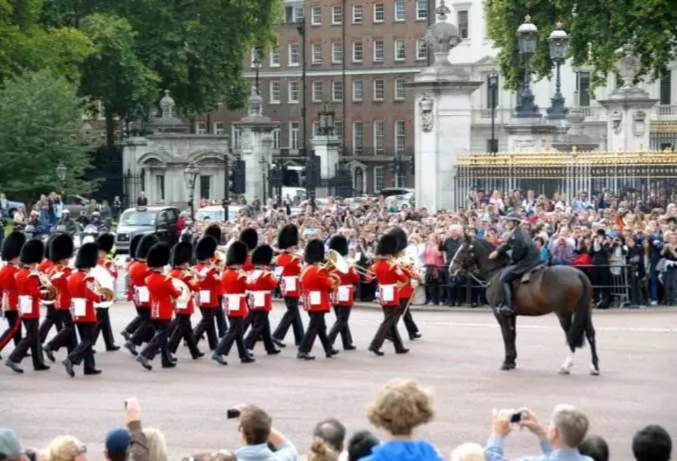 每逢換崗儀式,白金漢宮門前永遠(yuǎn)是人頭顫動(dòng)。皇家騎兵衛(wèi)隊(duì)的高頭大馬、紅纓金盔以及步行衛(wèi)兵和樂(lè)隊(duì)的黑高帽,是一種華麗,也是一種傳承。運(yùn)氣好的話,沒(méi)準(zhǔn)會(huì)遇見(jiàn)萌萌噠女王大人。