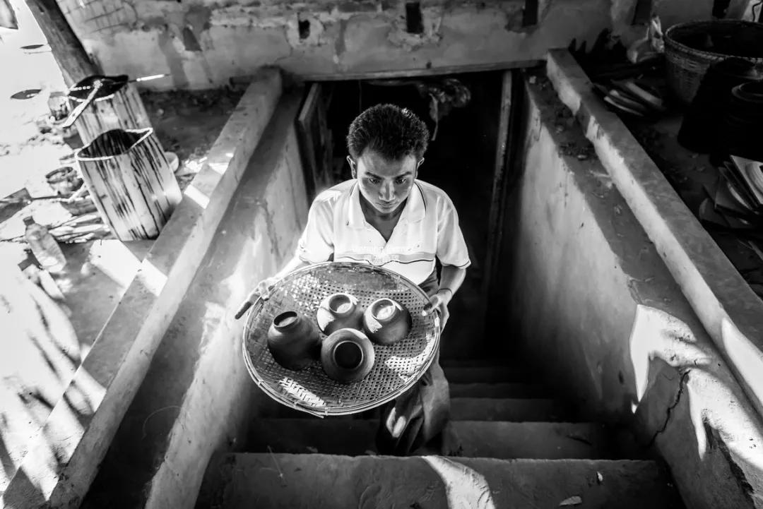在風干環節,每個作坊都有一地下室,在地下室風干的速度緩慢,耗時比較長,一般是好幾天