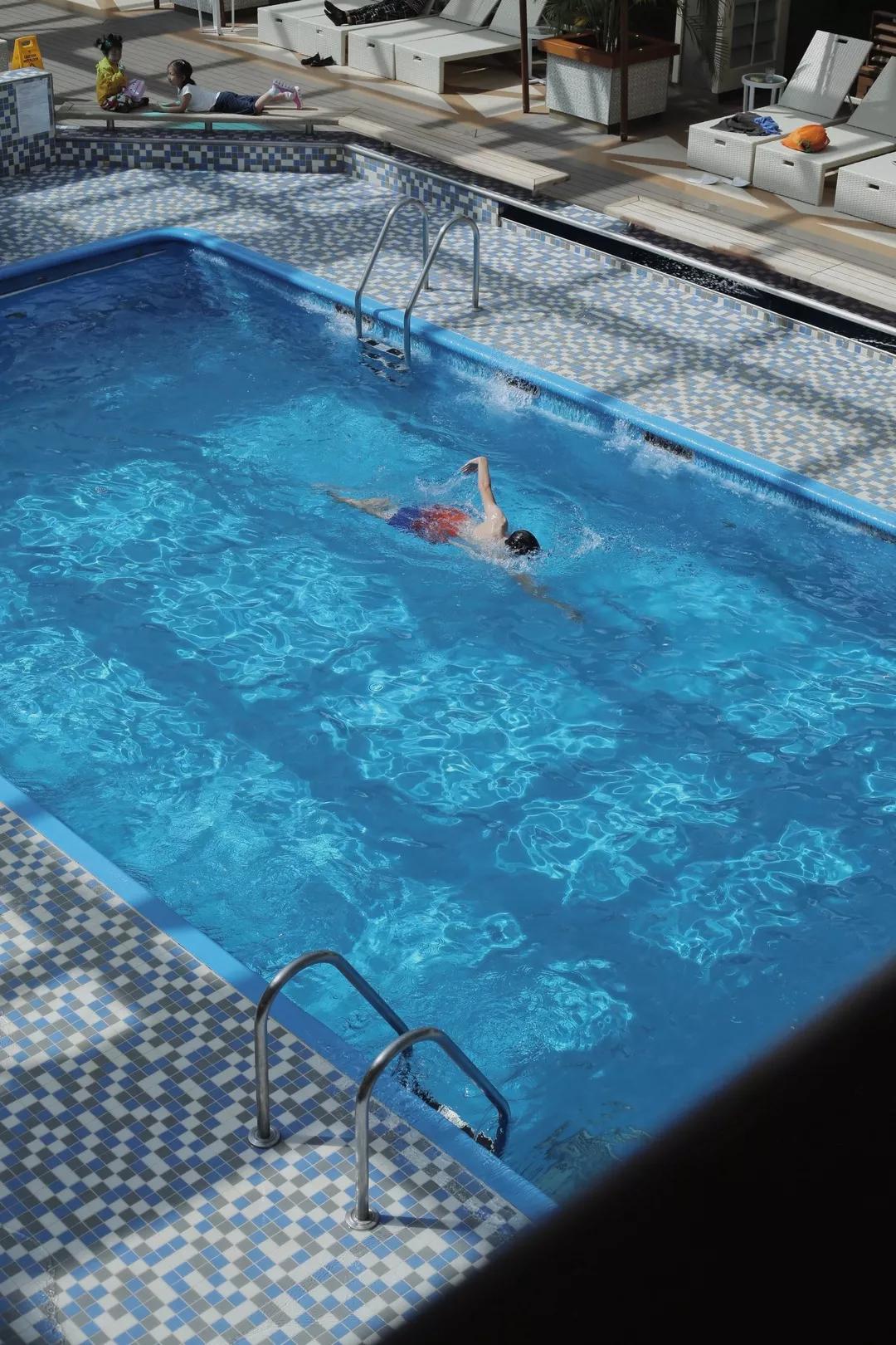 宙斯大劇院復(fù)刻著羅馬競(jìng)技場(chǎng)的恢弘,在每晚9點(diǎn)以后笙歌曼曼;尤文圖斯足球俱樂部提供的是海上“馳騁綠茵場(chǎng)”的縱情快意;滑動(dòng)玻璃穹頂籠罩下的愛麗斯泳池帶來恒久明媚的地中海氣候......若想親近大海,日光甲板上一字排開的躺椅足以叫人舒適地打盹,孩子們?cè)诼短煊境嘏c水上滑道玩耍正酣,不滿足于在室內(nèi)健身房揮汗如雨,甲板上的網(wǎng)球場(chǎng)與慢跑道無限接近天空與海洋。