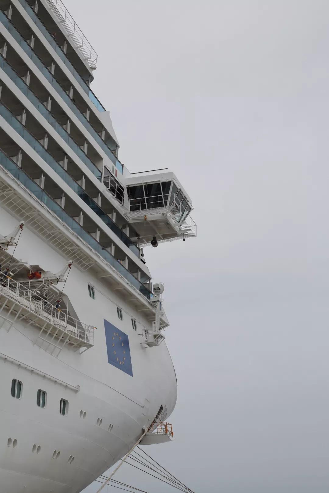 旅程第一天從上海吳淞口碼頭開始,賽琳娜號(hào)明黃色的煙囪在晴空下格外矚目。