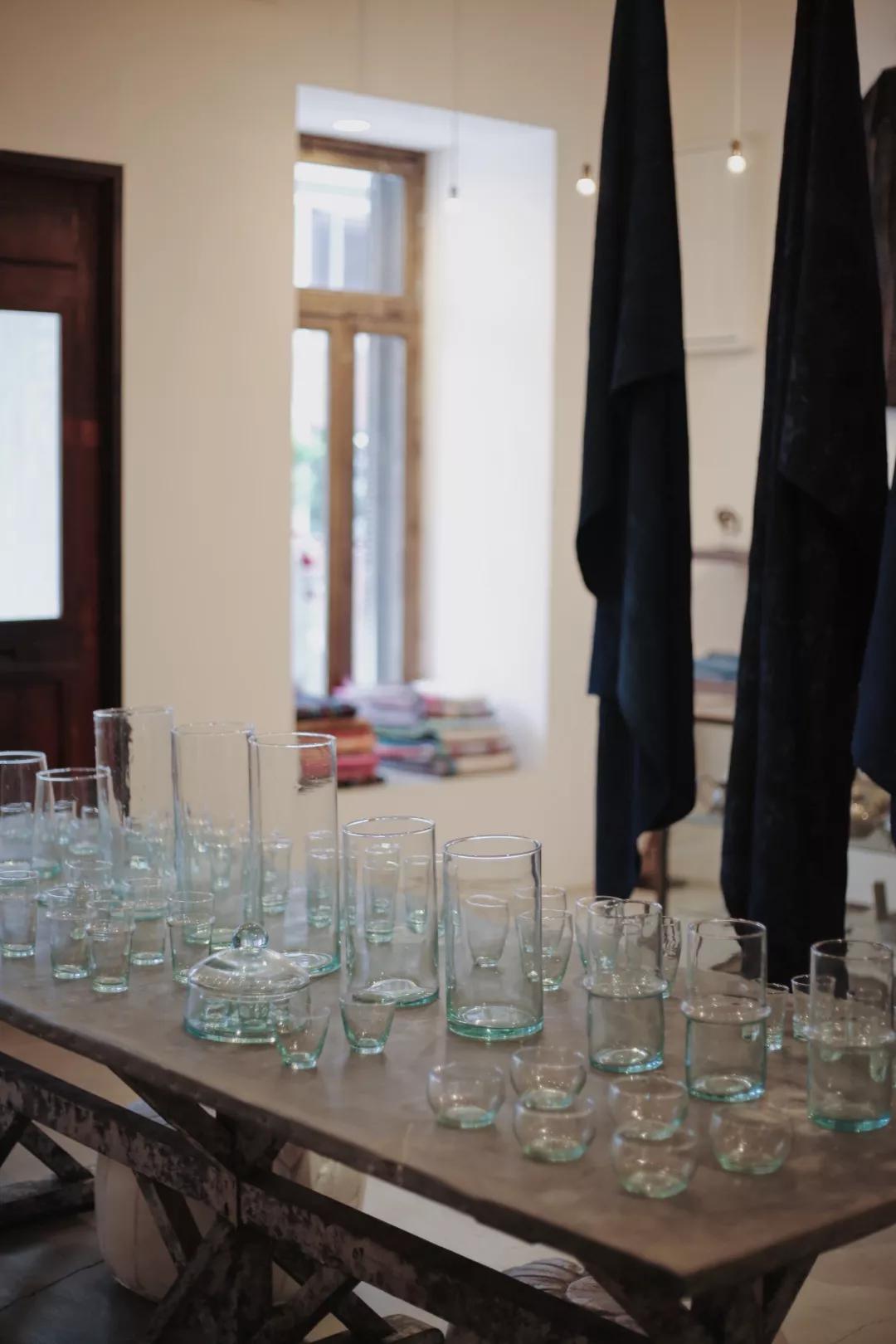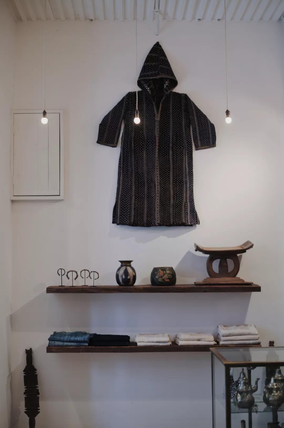 空間里迷人的老舊味道實(shí)在太吸引人,木桌上一水兒的玻璃器具,想著買一把花束插在里頭,應(yīng)該會(huì)很好看。摩洛哥的杯子,剛果的掛毯,中非的竹籃,印度的木工藝,充滿異國(guó)情調(diào)的手工制品,就這樣看似隨意地?cái)R置著,每一件都似會(huì)呼吸般充滿靈氣。