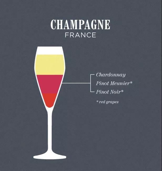 別看香檳看起來是“白葡萄酒”,但大部分香檳混釀時紅葡萄占比更大。