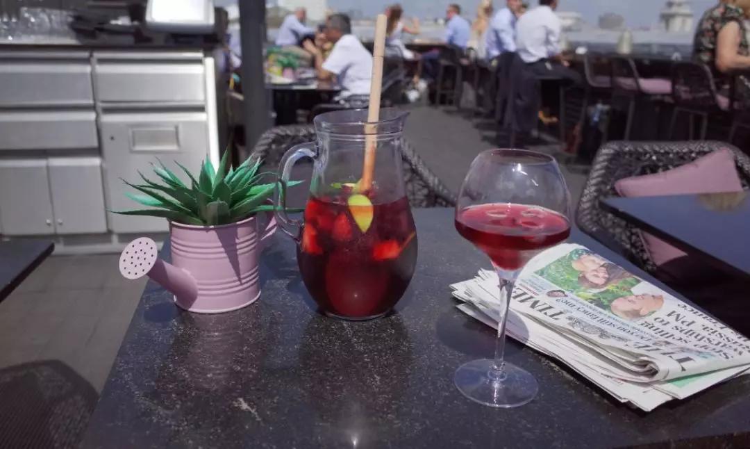 這家酒吧屬于Trafalgar Hotel 內部的屋頂酒吧,最有名的點是因為他就在特拉法加廣場(Trafalgar Square) 正旁邊,所以邊喝酒可以邊看著廣場的車水馬龍與人們,另一面則看得倫敦眼。這間屋頂酒吧只有在春夏季節時才啟用,入場也是從飯店大聽坐電梯上樓,常常到下午會人潮爆滿的情況,而且四點后會收入場費£5,自己要抓一下時間。之前跟哥們來常常會點一壺Sangria 喝酒聊天曬太陽,非常愜意。