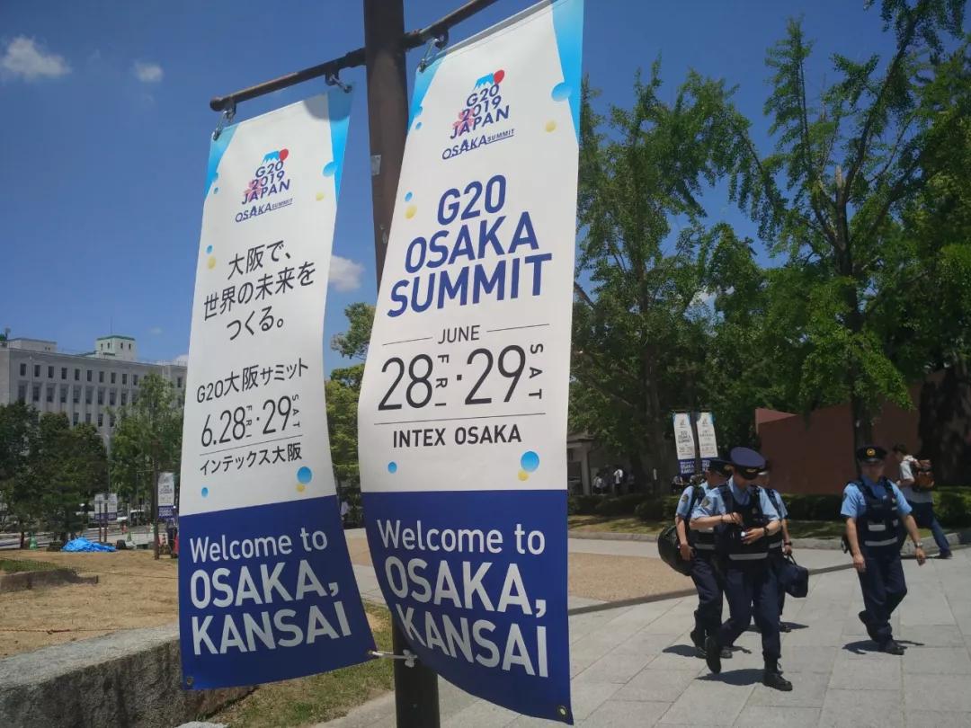 入夏的大阪,驕陽燦爛,綠意蔥籠,海風輕拂路人。隨著峰會臨近,在大阪主要景區、酒店、商廈及干道,均可以看到帶有二十國集團領導人大阪峰會元素的標牌、海報和條幅。