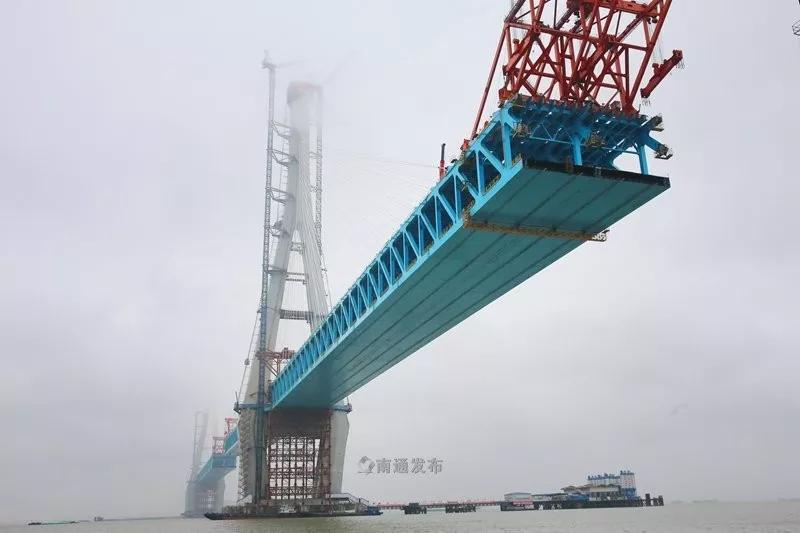 ·27日,滬通長江大橋南主塔順利封頂。至此,該橋兩座高達330米的主塔全部建成,標志著世界最大跨度公鐵兩用斜拉橋建設取得了關鍵性進展。