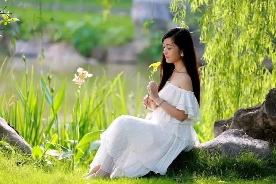 (2)如果想讓前景更加虛化:可以用一些樹葉,遮在鏡頭前,形成虛化的前景。但是,不要讓前景,把模特兩只眼睛都遮住。