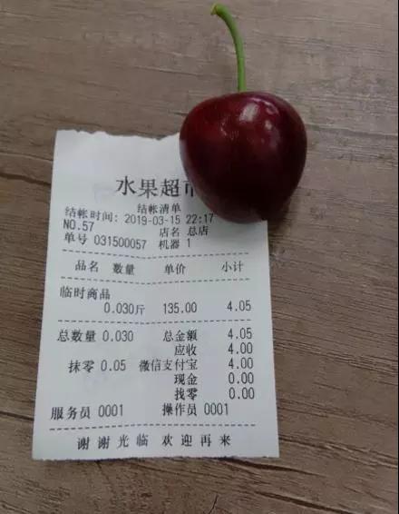 有網友拿著一顆車厘子稱重結賬,居然花了4元!