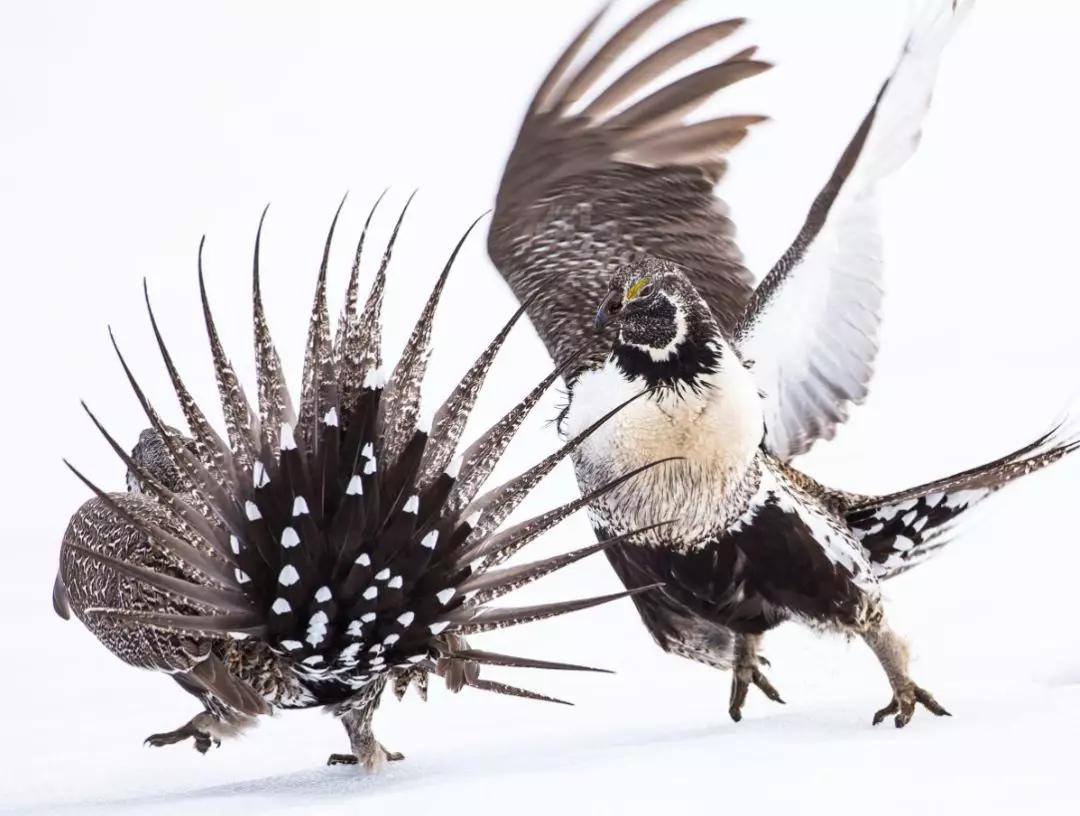 照片背后的故事:“我用了很多個春天寒冷的早晨來拍攝大艾草松雞求偶的場景。一開始,照片中的這兩只競爭者肩并肩地坐在一起,突然之間,它們仿佛收到了某種暗號,開始用翅膀向對方發起攻擊。這張在堅硬的積雪地上抓到的照片,展示了大艾草松雞為了求偶打架時的力量?!?/span>