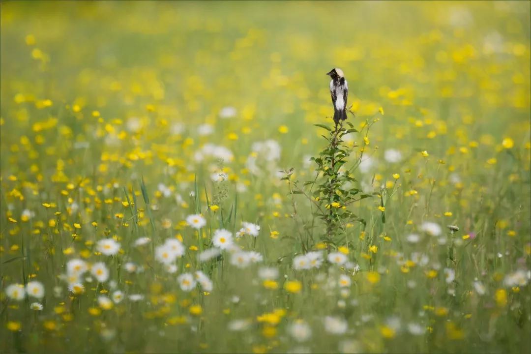 照片背后的故事:“日落時的鄧恩牧場草原變成了一片金黃色的草地,這只雄性食米鳥短暫的落在樹枝上好奇地掃了眼我的相機。他機械般的鳴唱被幾十只在我頭頂飛過的同伴回應著,我趕緊在它飛走前拍下了這張照片?!?/span>