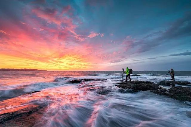 等太陽完全沉下地平線以后,也別急著馬上走,這段時間雖然光線不足,但天空的色彩是最鮮艷的;隨之而來的一個“藍色時刻”,也是你出片的好時機。