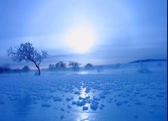 攝影師的這幅風(fēng)景作品以出色的冷調(diào)藍色而成功。照片中的每一處都透露著冬季、和平、安靜的意味。早晨,逆光中的冰原,結(jié)冰的河面上有很多不知名的小草小樹,清晨的寒霧籠罩著他們,雖然太陽被云層遮擋,但畫面卻呈現(xiàn)出一種神圣與美麗。