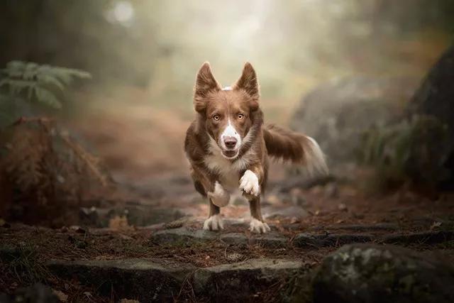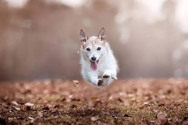 狗狗在跑步或跳躍時,會增大體力消耗,這可能會讓它們很快趕到疲倦——體現在攝影方面,那就是動作幅度降低,神情無精打采。要想拍出最棒的照片,你必須抓住它們剛開始運動,精力充沛的階段。