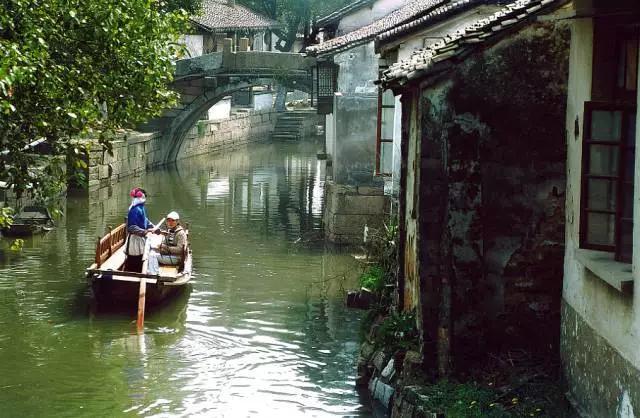 遠處是高聳的山峰和偉岸的長城,腳下是小橋流水烏篷船,這是一種很奇妙的搭配。