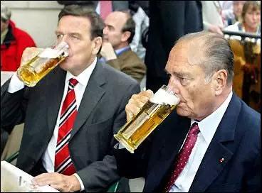 ▲ 法國前總統希拉克與德國前總理施羅德喝啤酒