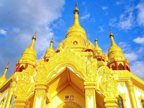 【勐煥大金塔】瑞麗最古老的佛教建筑及佛事活動場所。屬南亞傣王宮的建筑風格,有著深厚的民族文化內涵,堪稱中國南傳佛教第一塔。相傳,很久以前,每當月明星疏之夜,在金塔地基處,地就發出光芒,極為奇麗,令世人大為驚嘆;