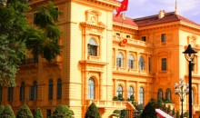 早餐后參觀越南的心臟----巴亭廣場、主席府、胡志明陵,博物館(周一五為保養期,只觀外景)、胡志明故居、小木屋、由一根石柱撐起的獨柱寺、外觀中國駐越南大使館;