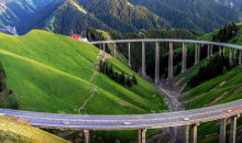 果子溝大橋在設計施工中秉承"以最小限度破壞、最大限度的恢復"的環保理念,在克服地質災害頻發影響通行的同時,邊施工邊進行環保恢復工作。建成的大橋橋身與果子溝的美景渾然一體,將為果子溝國家級風景區再添一道美麗風景線。