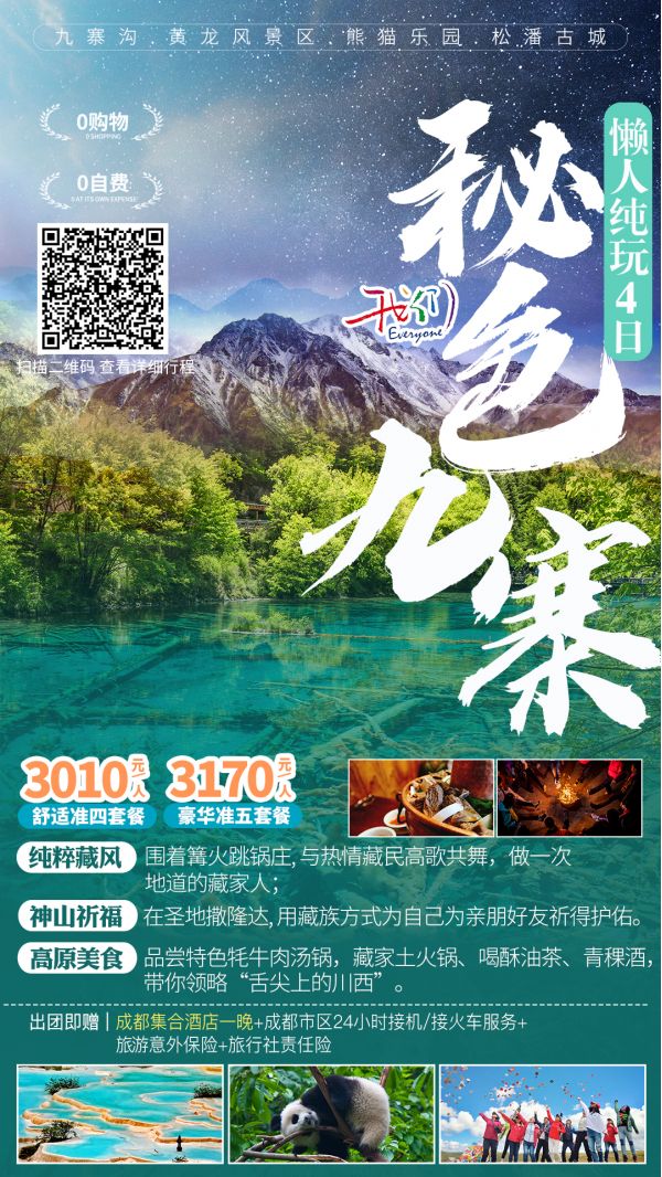 九寨溝門票、黃龍風景區門票、熊貓樂園門票;