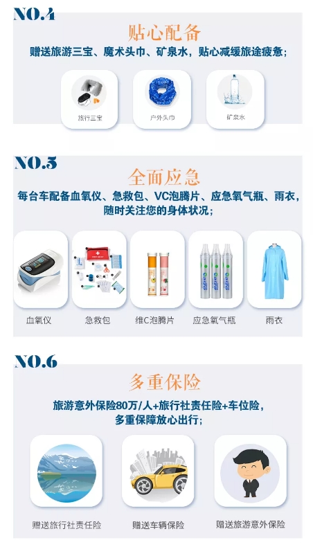 8、保險:贈送旅游意外保險,旅游意外保險最高賠付80萬元/人;贈送旅行社責任險;贈送車輛保險;因道路交通事故造成的客人意外傷害,按《道路交通事故處理方法》由保險公司賠償,我方不承擔另外的賠償責任;如有需要,游客可自行購買其他保險。
