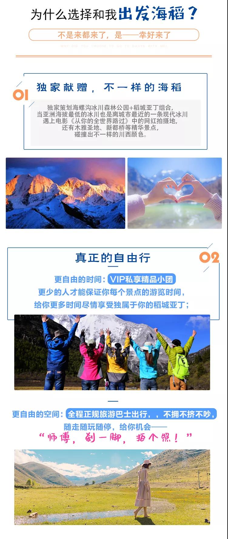 今天是行程最后一天,早餐后我們從新都橋出發前往【國家地質公園海螺溝】,抵達景區后換乘景區觀光車(觀光車費70元/人敬請自理),經三號營地前往干河壩索道站,之后大家可以選擇三種方式參觀冰川: