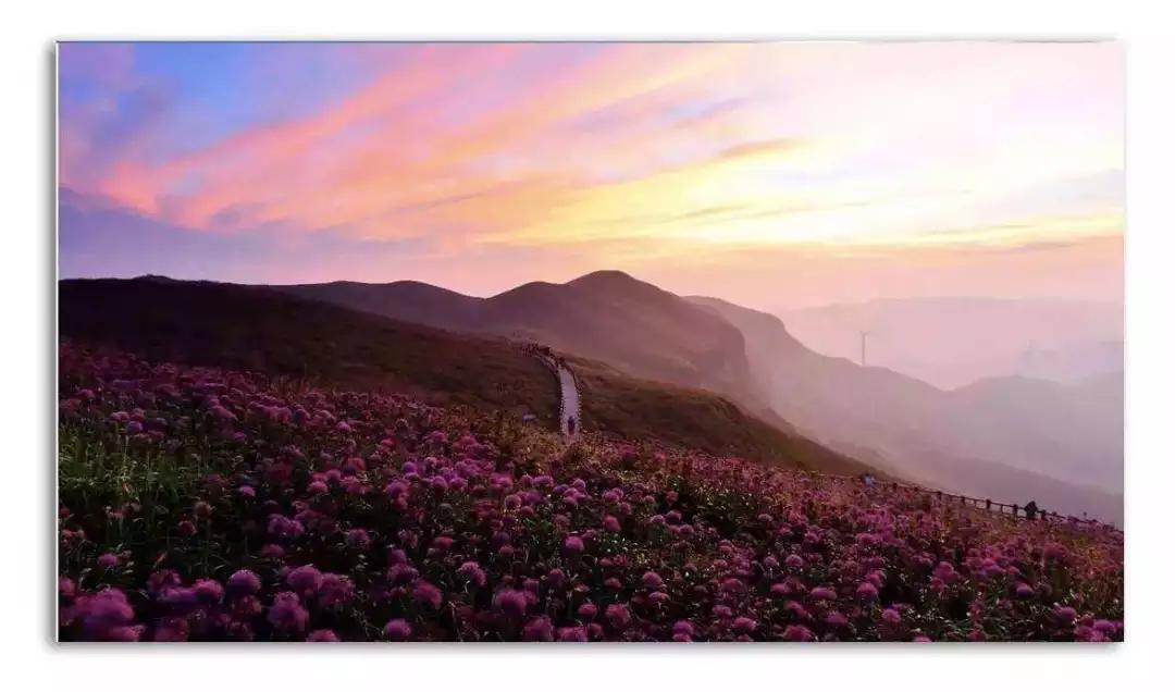 今天我們驅車來到云上花海的韭菜坪山腳下,為了能欣賞到韭菜坪最美的日出景象,我們把重頭戲放到了第二天一早,而今天大家在山下游玩拍照,這里盛開著一望無際紫色的馬鞭草 ,也可以上山去拍一個日落霞光哦。
