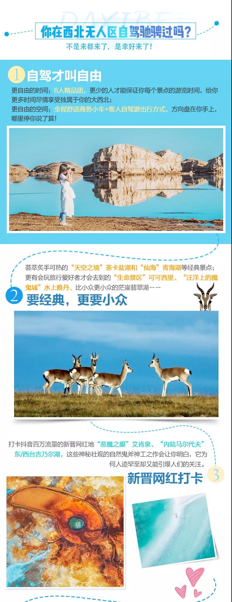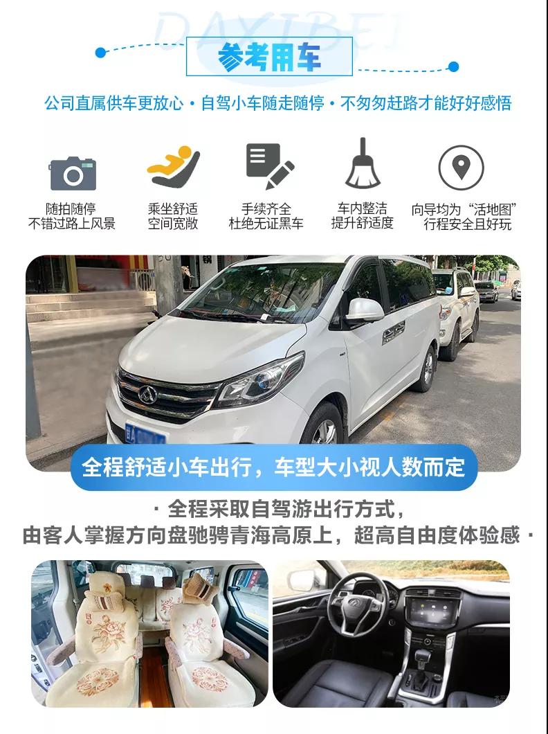 3.自駕提示:本行程全程采取自駕游出行方式,由客人掌握方向盤馳騁青海高原上;為客人安全著想,客人須有正規合格機動車駕駛證、具備2年以上駕駛技術、無重大駕駛事故方可自駕,望您諒解。