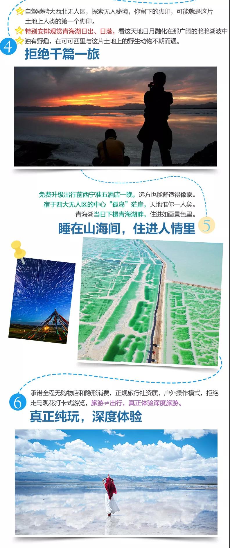 (3)茫崖翡翠湖、東/西臺吉乃爾湖、艾肯泉等尚未設立為景區,但如當地人收取環保費等費用與我方無關,望您諒解。