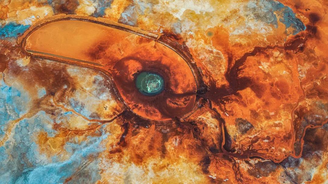隨后我們前往阿拉爾草原深處去探索一方汩汩噴涌了上千年的地熱噴泉——【“惡魔之眼”艾肯泉】。“艾肯”在蒙語中意為“可怕”,而“艾肯泉”在蒙語中又意為“源頭”,因其湖水成分艾肯泉周圍寸草不生且形成了一個紅褐色的圓形,正中央便是汩汩而出的泉水,這便形成了一個巨大的“眼睛”,被人稱為“大地之眼”。從空中俯瞰航拍,這巨大的眼睛脈絡清晰,栩栩如生,在它周圍點綴著許多青色的小泉眼,神秘而震撼;除了其令人驚奇的血色眼睛造型,艾肯泉還有神奇的“喊泉”屬性,據說站在岸邊朝它大喊,或者是在岸邊跺跺腳,噴泉口的水流量就會加大,會噴涌得更高。