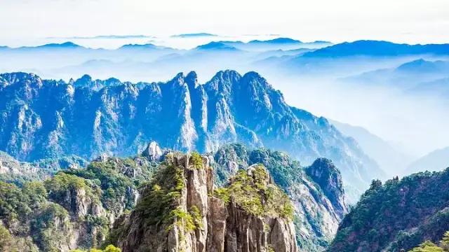 黃山原名“黟山”,因峰巖青黑,遙望蒼黛而名。后因傳說軒轅黃帝曾在此煉丹,故改名為“黃山”。黃山代表景觀有“五絕三瀑”,五絕:奇松、怪石、云海、溫泉、冬雪;三瀑:人字瀑、百丈泉、九龍瀑。黃山迎客松是安徽人民熱情友好的象征,承載著擁抱世界的東方禮儀文化。