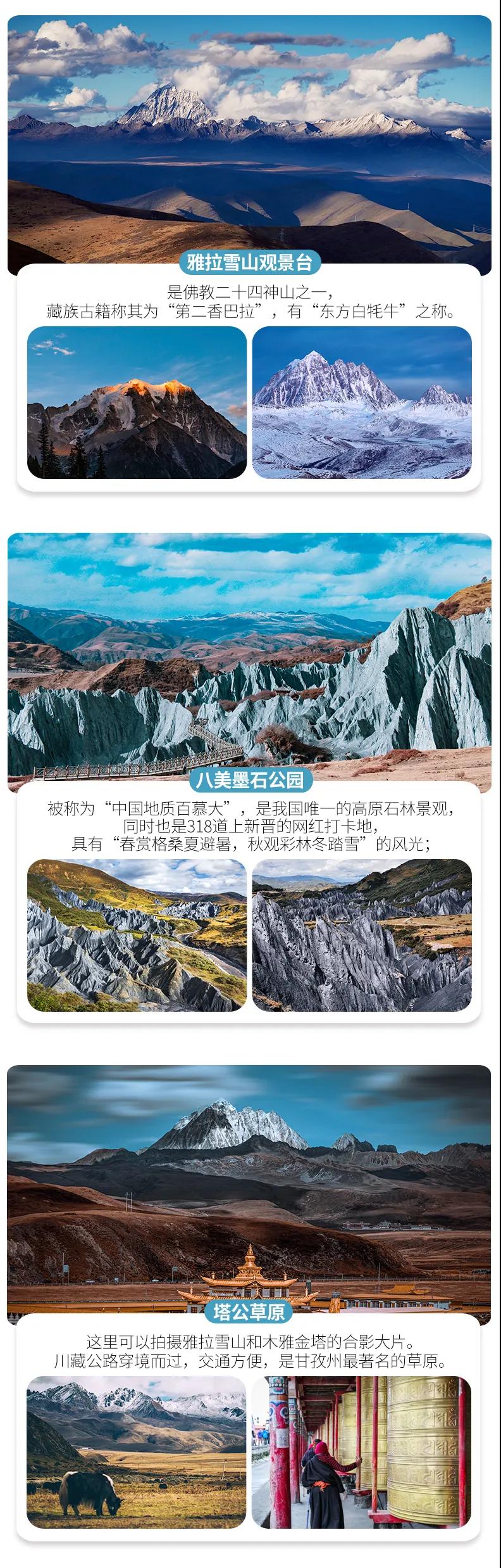 穿過瑪尼河谷,我們到達到達有“攝影家走廊”之稱的【新都橋鎮】,如果天氣恰好大家還可以登上貢嘎山觀景臺(10元/人,自愿選擇)遠觀蜀山之王—“貢嘎山”的挺拔雄姿。