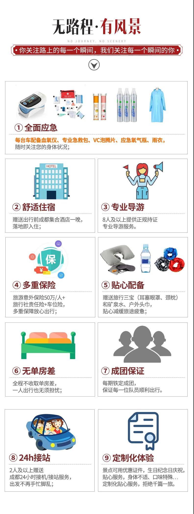 3、沿途景區景點、餐廳、廁所、加水點、高原緩沖區內設有小賣部、超市、旅游紀念品、手工藝土特產等販賣攤點,非我方安排,請游客根據自身需求及興趣選擇消費,并保留好購物小票以便后續維權;購物時請保管好隨身攜帶的物品,不到人多、擁擠的地方購物,不當眾清點錢包里的鈔票,也不隨商品推銷人員到偏僻地方購物或取物。