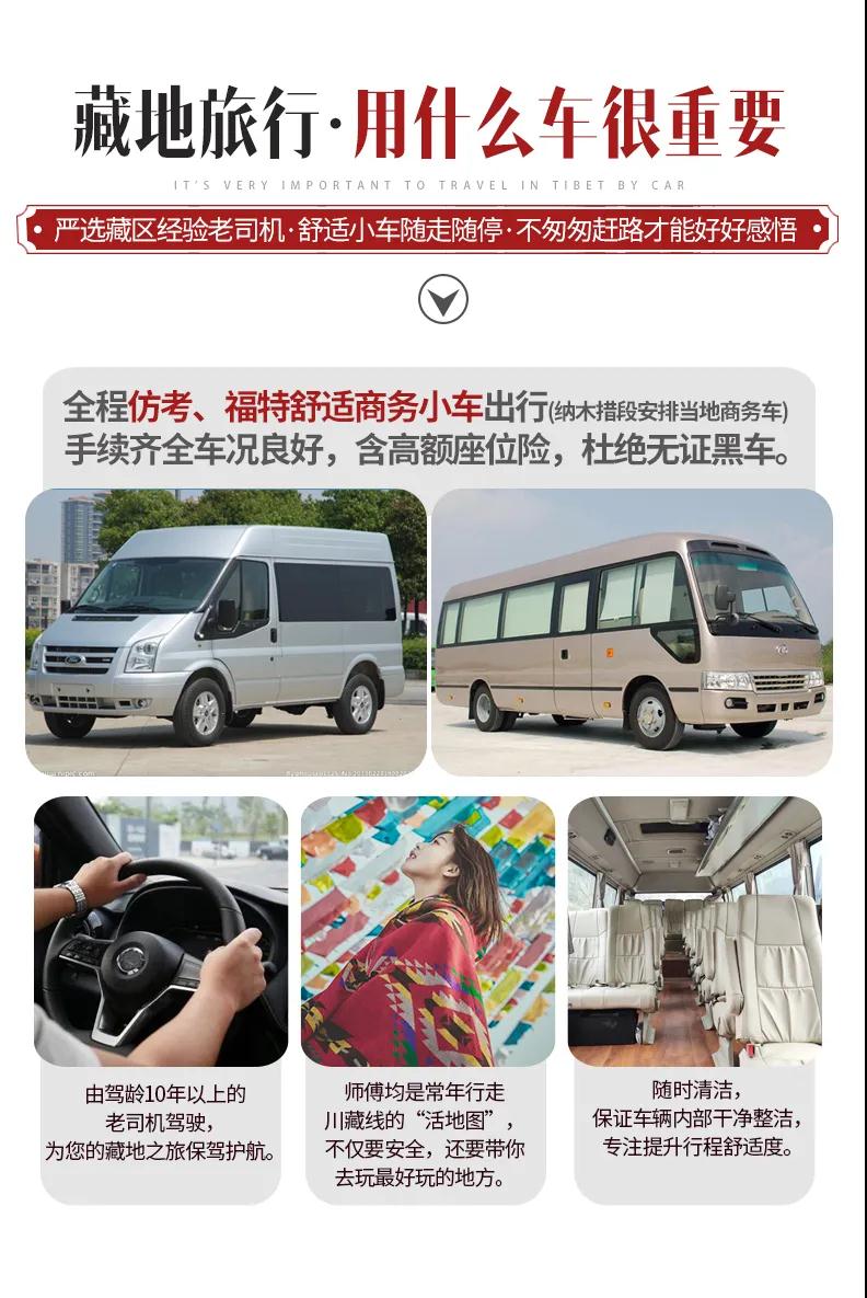 1. 納木措段需換乘當地商務車,由司機提供向導服務。