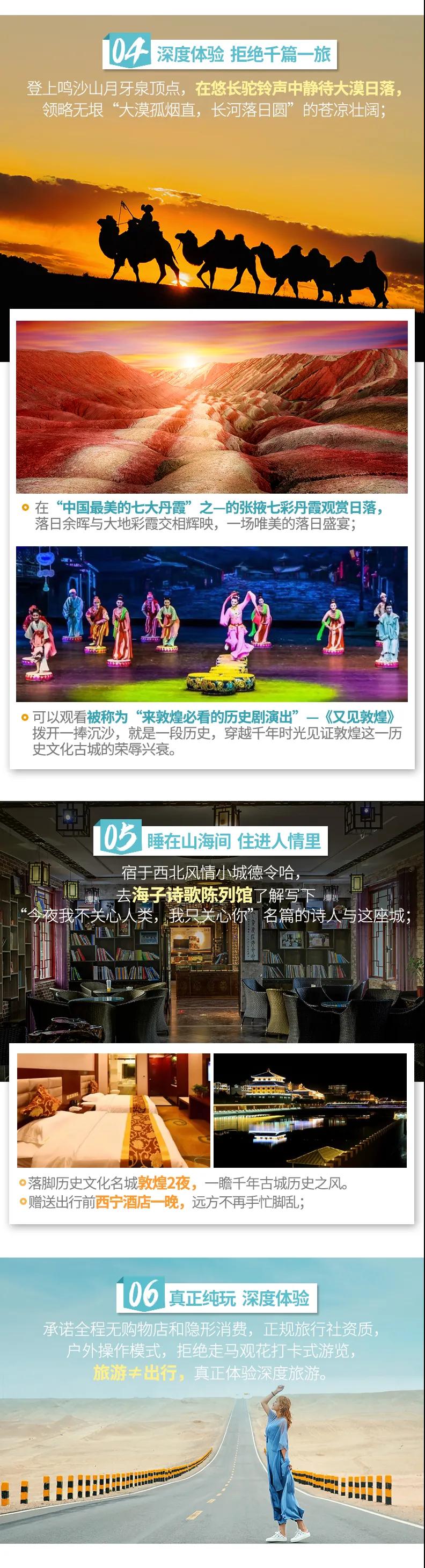 1. 敦煌莫高窟景區自2015年6月起實行數字展示中心數字洞窟展示和莫高窟實體洞窟體驗的預約參觀模式,每天限6000人參觀,團隊參觀時間嚴格按照莫高窟預約場次進行,因此,敦煌段景點參觀順序會根據莫高窟時間進行調整或同團客人安排不同時間游覽,敬請配合。