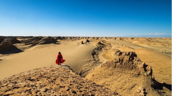 在這里你會(huì)感嘆大自然的鬼斧神工,許多世界著名建筑例如北京的天壇、西藏的布達(dá)拉宮、埃及的金字塔、獅身人面像、應(yīng)有盡有,雕塑有大漠雄獅,有絲路駝隊(duì),有艦隊(duì)出海。每個(gè)被侵蝕的雅丹都有它自己的故事,就盡情發(fā)揮自己的想象吧~當(dāng)然,最美的是夕陽(yáng),許多人為一睹茫茫荒漠上的視覺(jué)盛宴,歷經(jīng)辛苦來(lái)到這等待一場(chǎng)完美的落日。