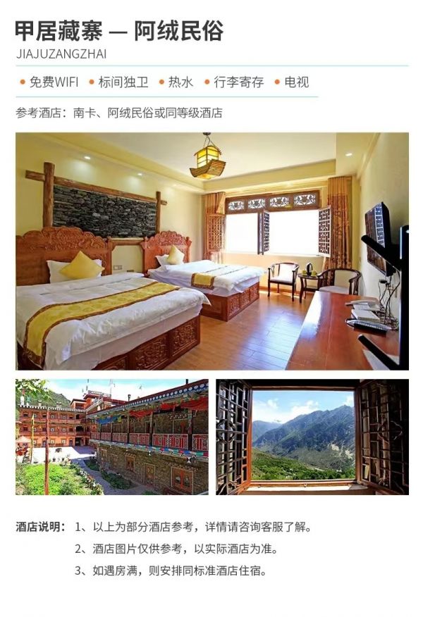 住宿:丹巴酒店或甲居藏寨民宿雙人標間