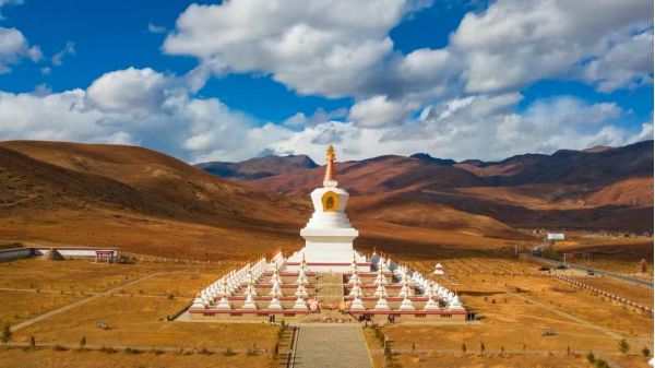 早餐后從新龍縣城出發 沿著峽谷而上 經過甘孜縣城翻越海拔4600米的埡口到達色達縣城 午餐后前往天葬臺參觀  色達,意為“金馬”,相傳在縣城所在地“色塘”發現一馬形黃金而得名,故名金馬草原。入住縣城酒店休息。