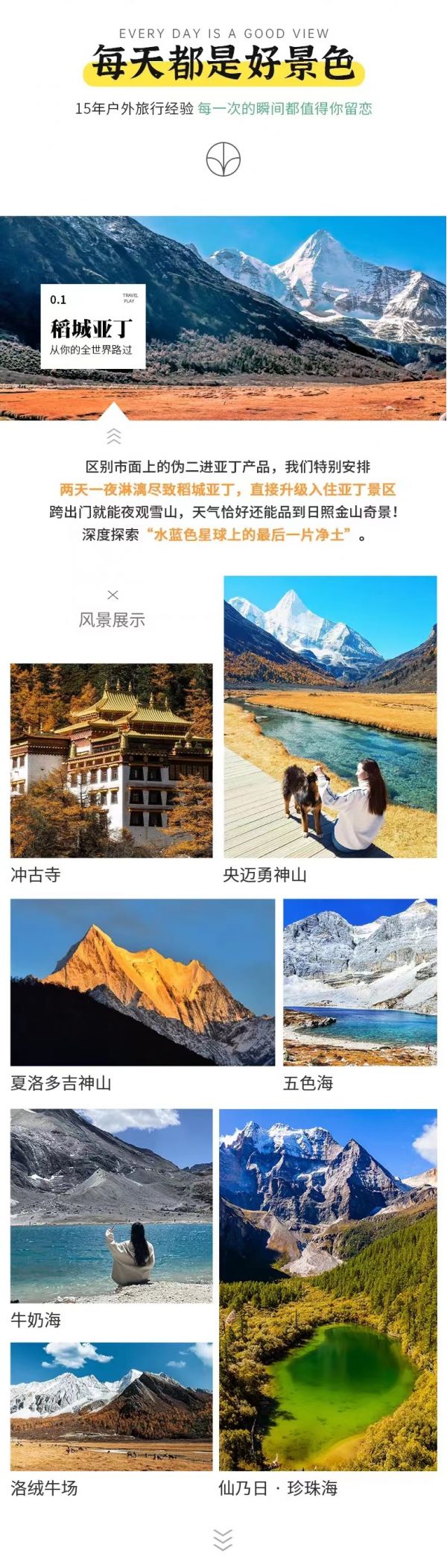 (1)亞丁景區(qū)門票 146元/人,亞丁觀光車120元/人(必須),景區(qū)保險10元/人;亞丁景區(qū)二進溝觀光車60元/人(選擇);沖古寺服務(wù)區(qū)至洛絨牛場電瓶車往返80元/人(可選,建議乘座);