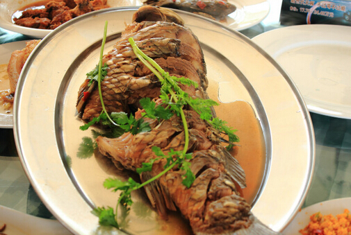 東平湖產(chǎn)的鯉魚、鯽魚、白魚等,肉質(zhì)肥美,營養(yǎng)豐富。用東平湖產(chǎn)的鮮魚和湖蝦,可烹制魚菜120多種,稱為“全魚宴”。