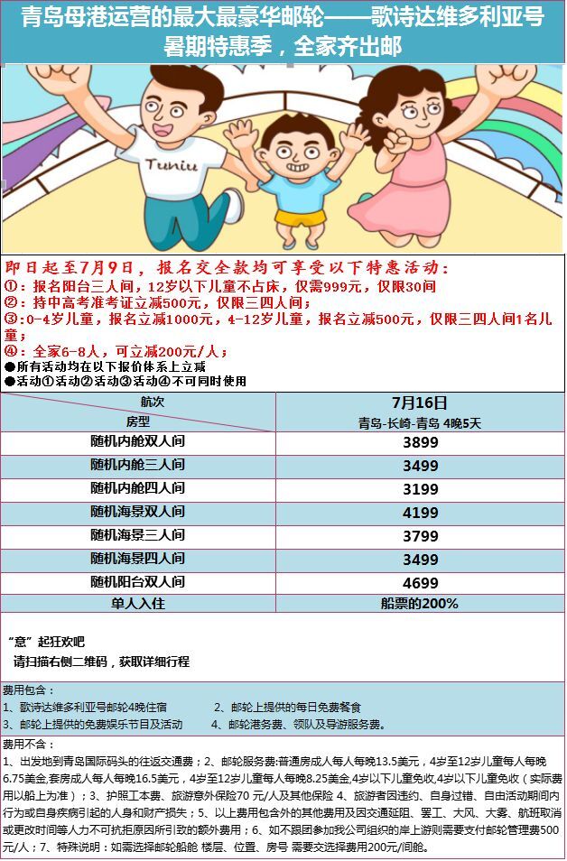 郵輪預計于08:00抵達青島,依次序下船,結束此次愉快、浪漫、愜意的海上浪漫之旅。