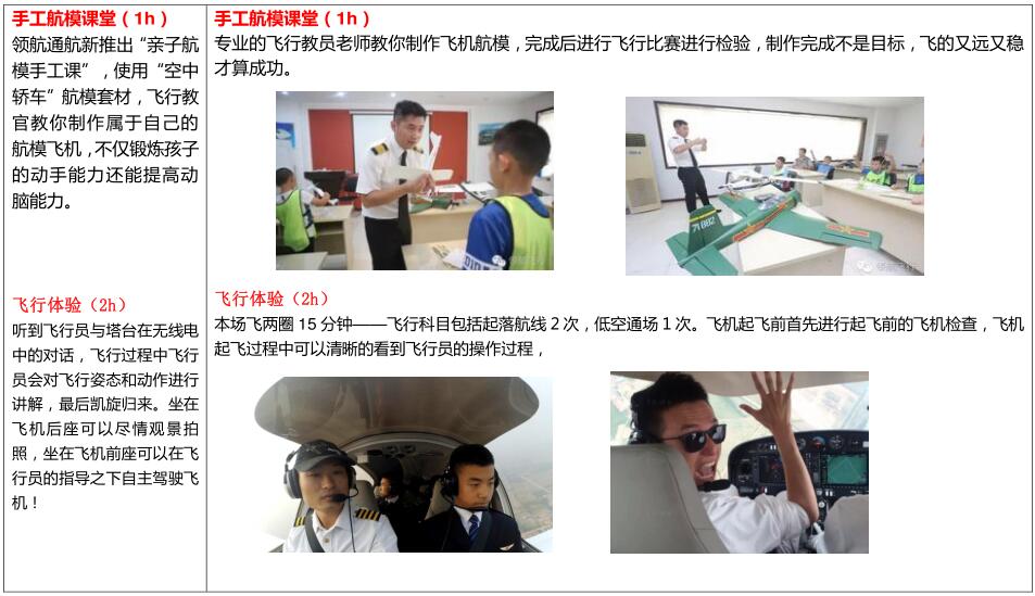學習航空基本構造及航空器各大系統,空中交通管制、航空心理,模擬飛行和實際飛行的訓練等科目,理論課程與戶外綜合體能素質訓練相結合,玩學一體,在快樂有趣的活動中,學到知識。