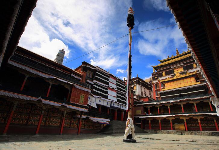 早餐后前往達古峽谷,該峽谷谷口寬闊,有農田分布,谷內多大石,并兼灌叢、稀松等皆縱橫裸露,頗為壯觀。由于雅魯藏布江在此處的下切作用加劇,所以谷內多瀑布、跌水。該谷全長約100多公里,上溯可至桑日縣。后驅車赴桑耶寺,途經野生猴區隨時停車拍攝觀野生猴(可準備點水果等食物喂猴子,喂食時請注意安全)。桑耶寺始建于公元8世紀吐蕃王朝時期,是西藏第一座剃度僧人出家的寺院。寺內建筑按佛教的宇宙觀進行布局,中心佛殿兼具藏族、漢族、印度三種風格,因此桑耶寺也被稱作三樣寺。桑耶寺現有50多僧人。當天拍攝活動結束后,入住山南澤當鎮。