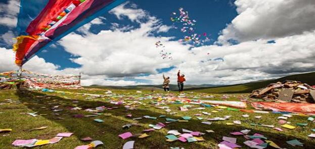 8、祈福體驗,掛經幡,撒龍達,為家人祈福。