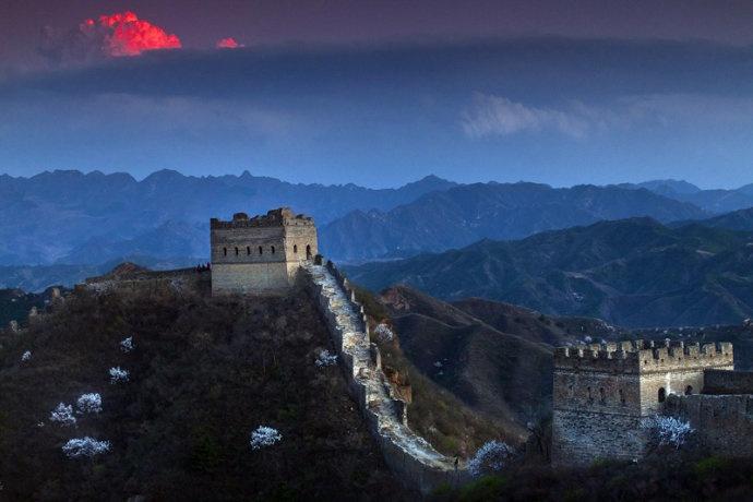【金山嶺長城】障墻、文字磚和擋馬石是金山嶺長城的三絕,素有“攝影愛好者的天堂”美譽(yù)。金山嶺長城始建于洪洪武元年(公元1368年),為大將徐達(dá)主持修建;隆慶元年(公元1567年)抗倭名將薊鎮(zhèn)總兵官戚繼光、薊遼總督譚綸在徐達(dá)所建長城的基礎(chǔ)上續(xù)建、改建;金山嶺長城是現(xiàn)保存最完好的一段明長城,被專家稱之為明長城之精華;依山設(shè)險(xiǎn)、憑水置塞,雄城起伏似鋼墻鐵壁;雕樓林立,如甲兵護(hù)衛(wèi),“一夫當(dāng)關(guān),萬夫莫開”,以其視野開闊、敵樓密集、建筑防御體系功能奇特而著稱于世;金山嶺長城,一年四季變換著不同的景色,春到金山嶺,滿山遍野一片嫩綠,桃花、杏花以及各種不知名的野花競相開放;入夏,郁郁蔥蔥的樹木,潺潺的山間溪水,五顏六色的彩霞和雨天空出現(xiàn)的彩虹,把金山嶺長城打扮得絢麗多姿;金秋時(shí)節(jié),長城內(nèi)外,漫山紅遍,層林盡染,各種野果掛滿枝頭;嚴(yán)冬雪后,這里變成了銀色的世界。蜿蜒起伏的長城,就象飄落在萬山叢中的一條玉帶,忽高忽低,忽左忽右,忽隱忽現(xiàn),那一座座敵樓,在陽光的映照下,就象鑲在玉帶上的一顆顆珍珠。