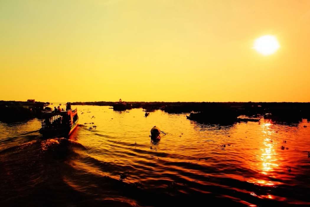 【洞里薩湖】,此湖總面積在雨季為10,000多平方公里,在旱季時為6,000多平方公里,而漁獲量之豐富,不僅源源不斷供應全高棉人民食用,亦可外銷,在這游程中,您可看到當地水上人家于特有的船屋上捕魚、種菜、養豬;所有陸上設施應有盡有,舉凡醫院、加油站、學校、百貨公司、雜貨店等,別具特色;