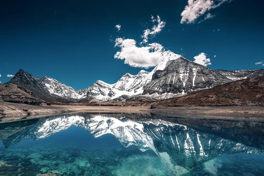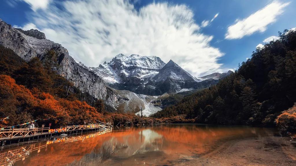 這里高山陡峭,山上生長(zhǎng)著參天的樹(shù)木,群山的顏色隨著四季變換著,白雪下裸露出的黑色巖石訴說(shuō)這千年藏地的蒼涼;