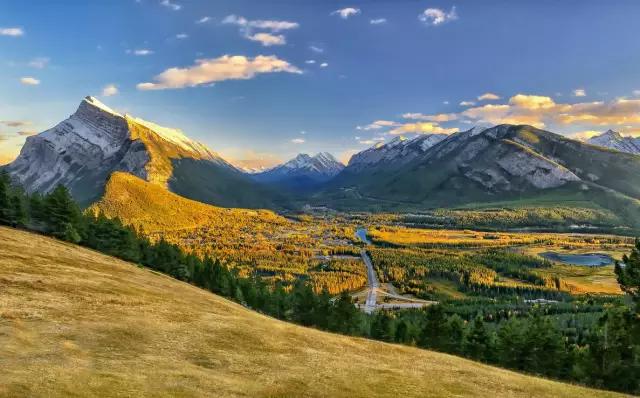 巍峨的高山便是班夫著名的山峰Mount Rundle。從班夫小鎮乘坐硫磺山纜車,到達海拔2285米的山頂。從這里到達山頂可以看到班夫小鎮的全景,完全有一種一覽眾山小的效果。
