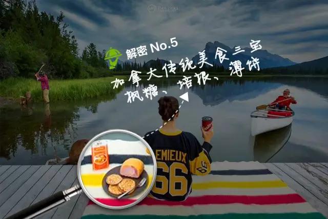 少女左側的幾樣食物是“加拿大傳統美食三寶”: 楓糖、培根、薄餅。三樣食物可以任意搭配,是加拿大人的盤中最愛!楓糖培根冰淇淋、楓糖烤培根、美劇《破產姐妹》里大紅大紫的楓糖培根杯子蛋糕、楓糖薄餅都是加拿大三寶搭配出來的美味。