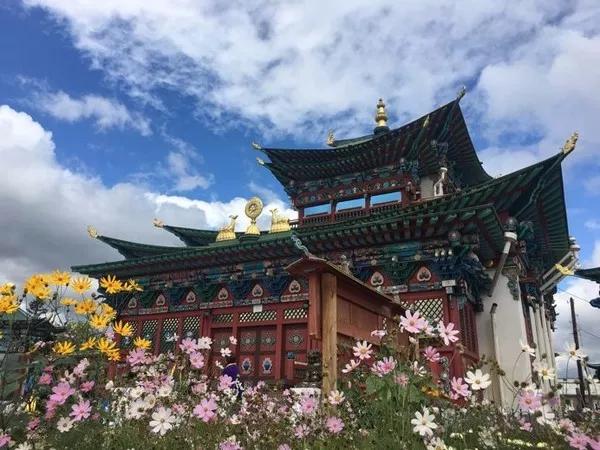 眾所周知,俄羅斯的建筑大多都是洋蔥頂或是斯大林式的巴洛克風格,但喇嘛教卻散發著濃濃的藏傳佛教的氣息。整個建筑群坐落在山腳下地勢開闊的峽谷里,藍天白云下,大殿金色的屋頂熠熠生輝,莊嚴華美。