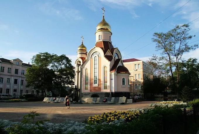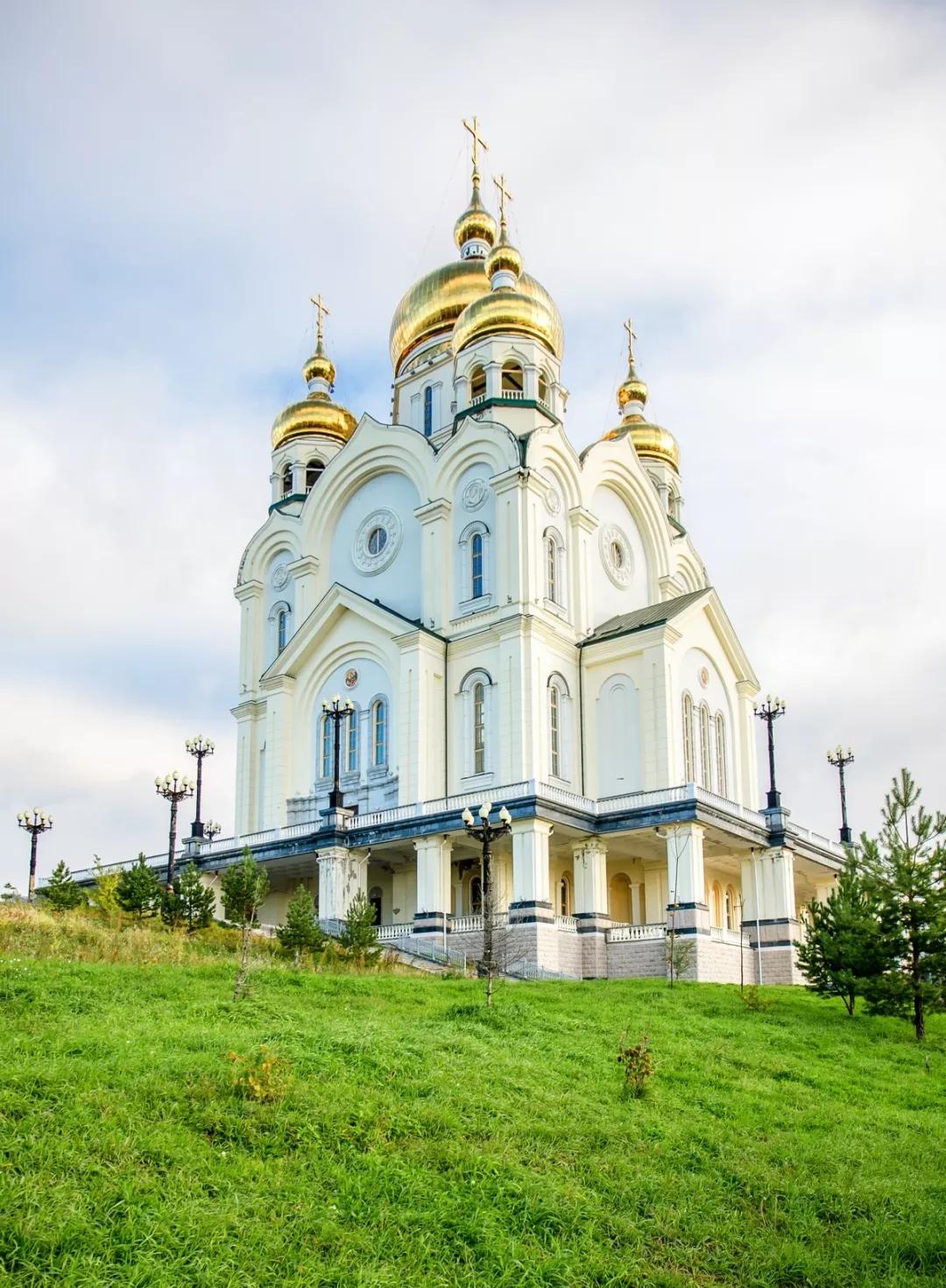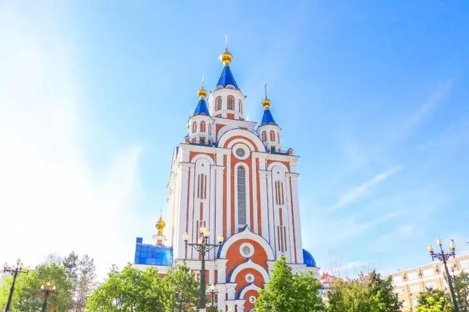 哈巴羅夫斯克最經典的建筑莫過于這里最大的東正教教堂——金頂教堂,金光燦燦的洋蔥頭據說用了3噸多的俄羅斯特產紫金融造而成,可以說是相當奢侈了。